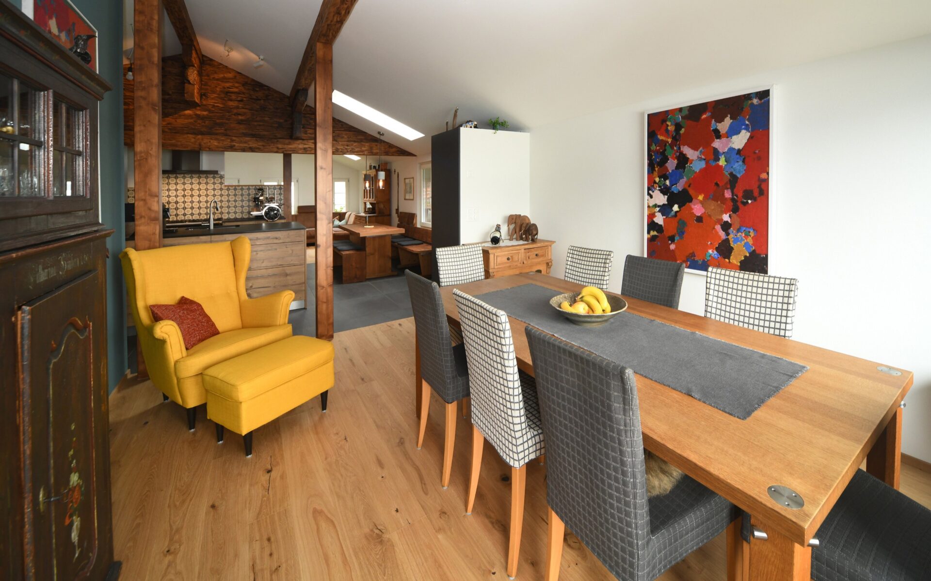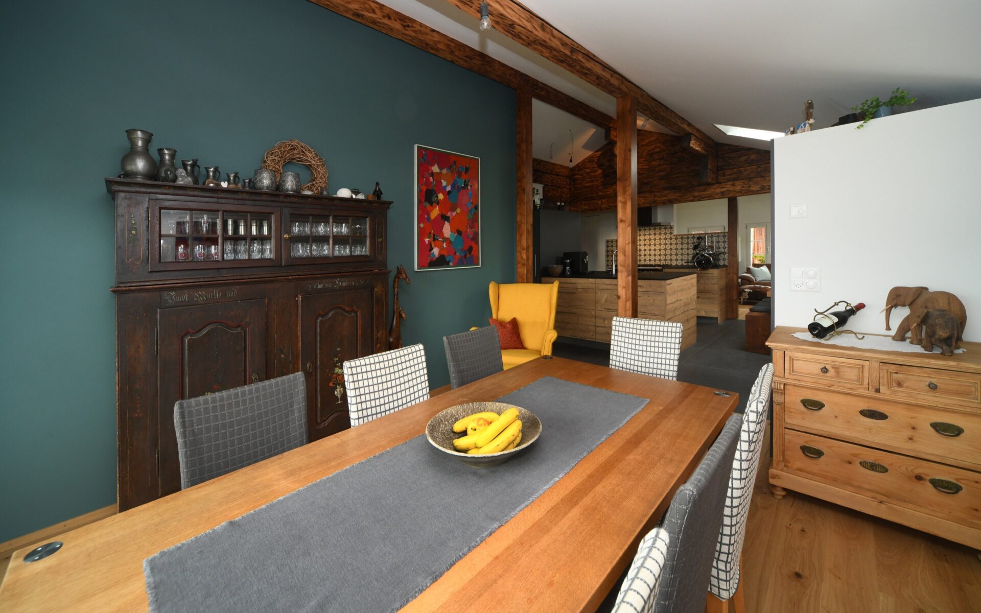 • Küche und Essbereich: Esstische, Stühle, Küchenschränke, Regale, Kleiderschränke und Schubladenschränke, Kommoden und Ankleideschränke